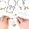 Lo que incluye: 12 dijes de metal antiguo dorado y plateado, cuentas surtidas (oro, plata, negro, transparente), 12 anillos de salto, 3 colores de tubo de gelatina, hilo elástico, instrucciones fáciles de seguir, a partir de 8 años. Diseñado en Estados Unidos
