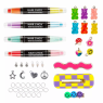 * QUÉ INCLUYE: 4 Hair Chox™ de doble punta (8 colores en total), 1 pinza para el cabello a cuadros, 1 pinza para el cabello en zigzag, 1 pinza para el cabello con cara sonriente, 6 dijes de osito de goma, 4 dijes de polímero, 3 dijes de perlas, 3 dijes de gemas , 4 amuletos de metal, 20 anillas para saltar e instrucciones. Recomendado para mayores de 8 años. Diseñado en EE.UU.